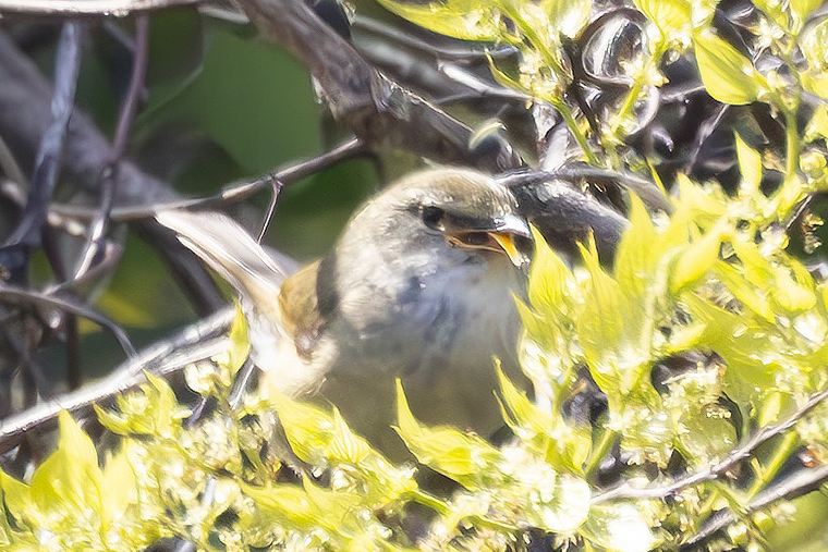 ウグイスの鳴き声が聞こえ始めたころは、まだたどたどしい鳴き方でしたが、4月上旬には「ホーホケキョ」と綺麗な鳴き声になってきました。