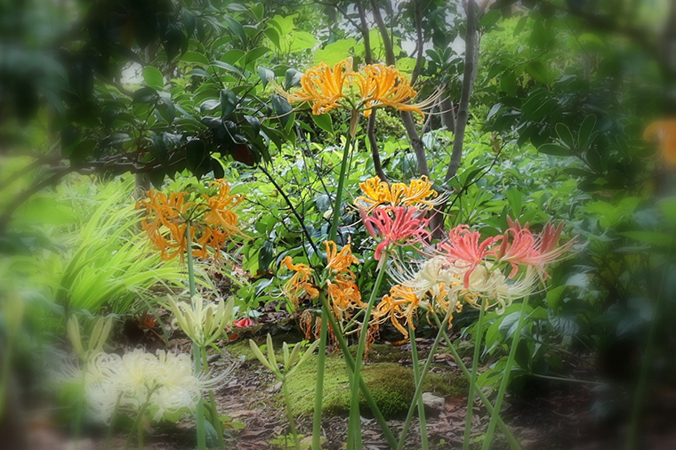 横浜市内の彼岸花で有名な西方寺。9月末には、三色のリコリス(彼岸花)が見ごろでした。