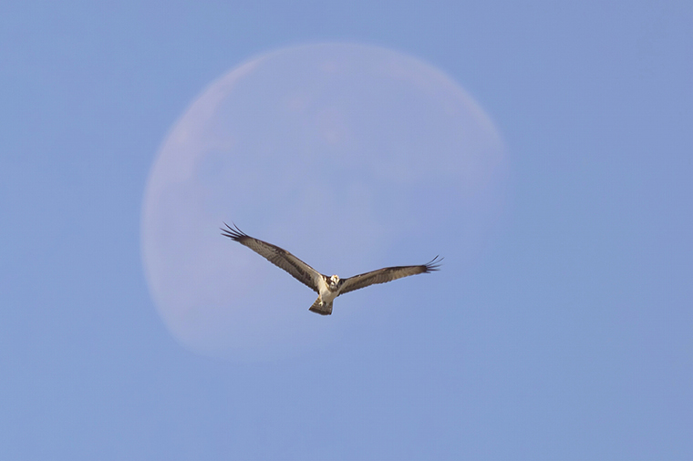 ミサゴが月に重なってくれないかなぁ~!と心の中で願っていると、願いが叶いました。 貴重な“月ミサゴ”です。
