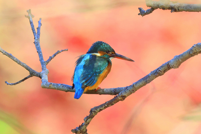 少し季節感がずれますが、今回は紅葉とカワセミの写真です。