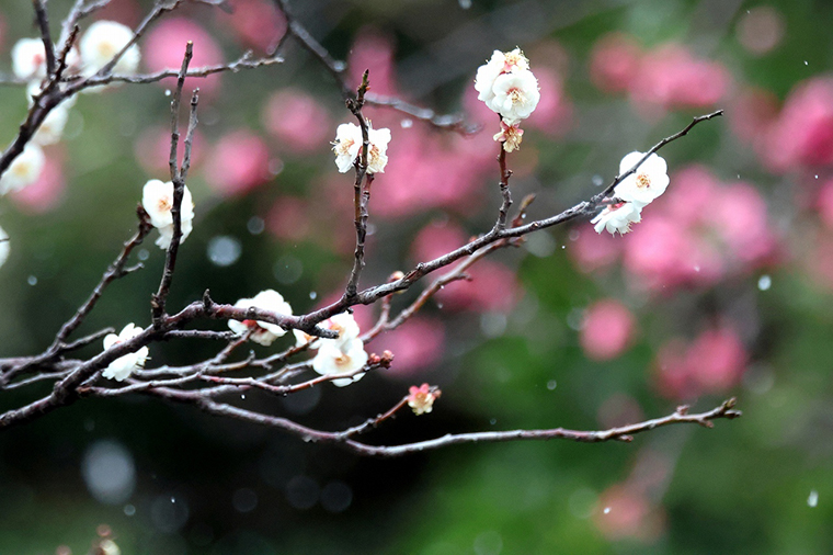 初雪と白梅、紅梅です。