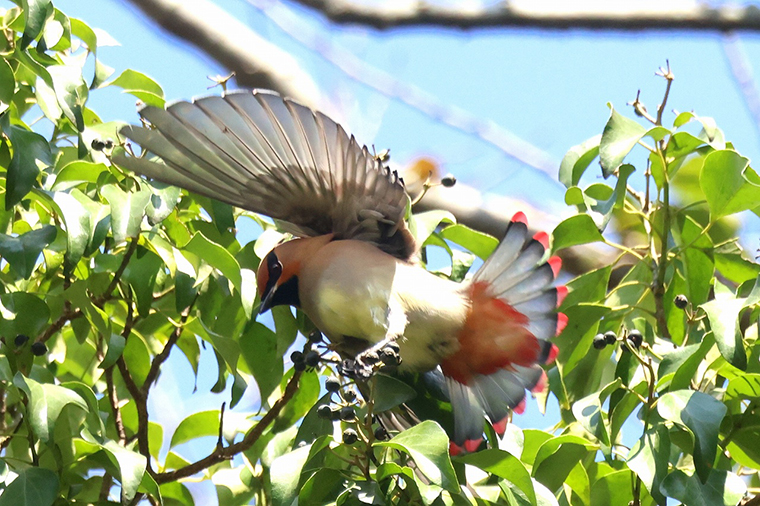 ヒレンジャクの尾羽の美しい緋色に魅せられたひと時でした。