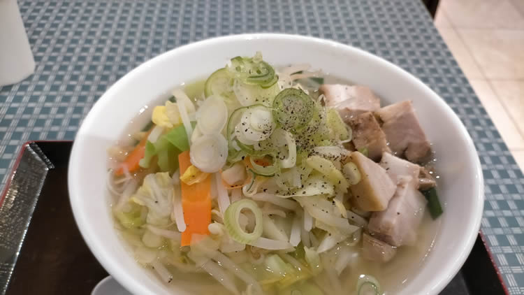 タンメンって、私らの世代には懐かしいんですよね。 塩味で野菜が沢山乗っかって。 で、ここはチャーシューもコロコロしたのが載ります。