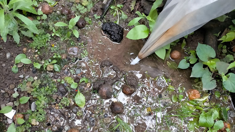 【湧き出る】 朝のパトロール(最近、猫化しております)の時に、裏門の梅の木の下から液体が湧いてる。。。 最近の大雨の影響か?と思ったんですが、なんかチョッと違う。。。 今日は朝から外せない仕事があったので、後を頼んで確認してもらうと、水道管が壊れていたそうです。(^^; 幸い、水道メーターの向こう側だったので、実害はなかった(水道代は市の負担)のですがヒヤヒヤしました。 しかしどうせ湧いてくるなら、石油とか、砂金とか、酒とかなら今頃大金持ちかアル中だなあ。明日あたり湧いてこないかな。 今年は梅を大分落としてしまいました。 忙しくて梅仕事があまりできず、それでも無糖の梅酒を幾つか造りましたので冬の楽しみにします。 いずれ時間ができたら梅干し作りを学びたいです。。。