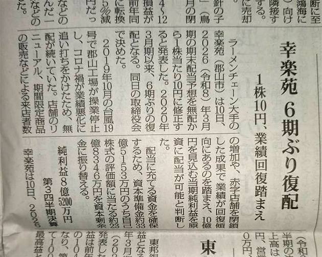 幸楽苑が復配。チャンと予測が当たりました。 最近、神がかっている気がして来ました(笑)。 私、失敗しません。 明日の株価が楽しみです。