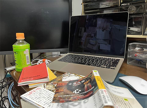 マウスもモニターも私に調子合わせて使えないから、今日は最小限の片付けだけして、脚を投げ出して本をよむことにするー