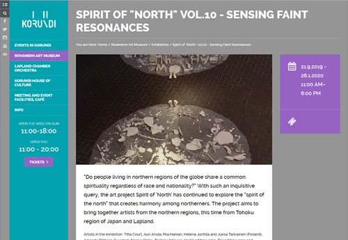 フィンランドのロヴァニエミ美術館のサイトで、私たちの「精神の〈北〉へ vol.10」(2019.9.20~2020.1.26)の予告を始めた。ありがたい!
