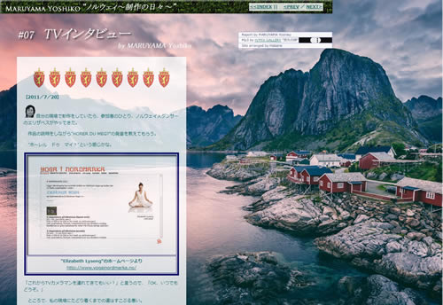 この国際ビエンナーレ(アーティストAne Øverås 企画の Kunst I Natur Biennale, )参加で、私は気持ちを鎮め、精神の安定を保つことができた。さらに、北方各地の作家と繋がり、Vigdis HaugtroやMargrethe Aasと知り合い、信頼を深めて、プロジェクト「精神の〈北〉へ」1回目をスタートする際に二人を招くことになる。 https://www.facebook.com/SeishinNoKitae 私のHatenaブログは、2010年フィンランドでのビエンナーレ滞在制作に始まり、ノルウェイ滞在制作、アゲハの観察記録など、フェイスブック を開始する直前の2012年12月まで続けた。 ノルウェイの滞在記録は10回に分けて、ビエンナーレ参加、オスロのテロ現場にて、リレハンメルでのアーティストリサーチ、について書いている。: https://maruyamayoshiko.hatenablog.com 下の添付サイトは、私のHatenaブログから岸波さんが転載しつつ、さらに画像を加えて充実させたページ: https://habane8.com/Yo/N/f07.htm