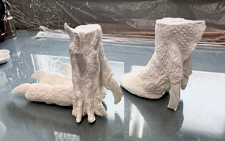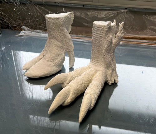7月の個展(7/11~23 藍画廊:銀座1-5-2)で、展示の中心になる「人間以外の存在」の主、想像上の生きもの。 ヒヅメ足に魚の背びれを合体した右足と、猛禽類と樹木を合体した左足。 この足一対は、フィンランドでの展覧会から使っているけれど、改良の必要を感じて、手を入れ出した。 骨格や筋肉がどうなっていて、断面の形はどうなるのか、樹木の枝が出ている周囲はどんなふうになるか。 公園で老木を観てきたり、ネットで検索したり・・・改良はつづく。 誕生日のメッセージありがとうございます。 Messengerのほうも、ありがたく拝見いたします。