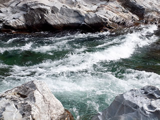 上からのダム湖の風景は大きく静かに拡がっていました。 農業用水として あるいは工業用水として 色々な 厳重な温度管理がされていて 田んぼに住む虫などが 知らなかった〜〜〜♪ 少しお利口さんに! そして次の所へ 出発! 景色は水繋がりで〜〜 大ぼけへ! 漢字で書くと 大歩危・小歩危! 国道が出来 難所では無くなった様ですが・・?