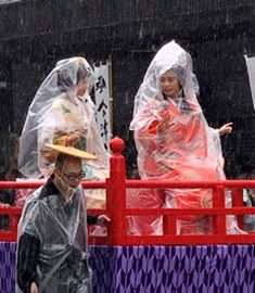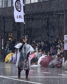 当日、土砂降りでねー、藩公行列の人たち、大変そうだったよ。