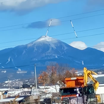 午後イチに眺めた時には頂上もくっきり晴れていて眩しいばかりの真っ白な雪を見せてくれていたのですが、やはり3時半過ぎ、夕方に近いからか ちょっとしか見えません。