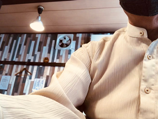他の客もいて店内の写真を撮るのが憚られるので、自撮りにして後方風景をチョットだけ。