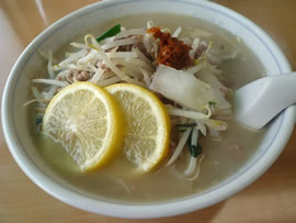 なるほど、レモンを入れたラーメンって、どっかにもあったな。あ、そうそう、石狩ラーメンでもそんなのが。