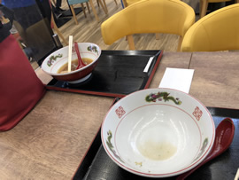 続いて呼ばれたケイ子の番号のも取りに行き、さあ、待ちに待った「ひろ田製粉所」のラーメンだ。