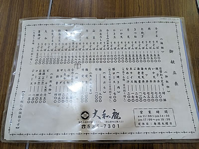 御献立表 (大和庵) |