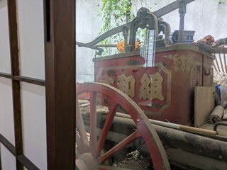 これは時代劇などで見る消防の「放水器」だ。『大和組』と大書してある。