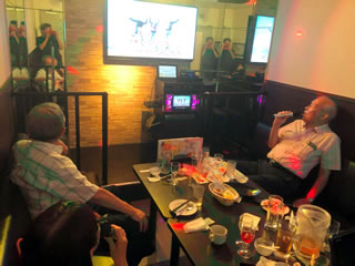 それでも、注文が届き始めると、次第に和やかな雰囲気が戻り、早速、ケンちゃんが歌います。