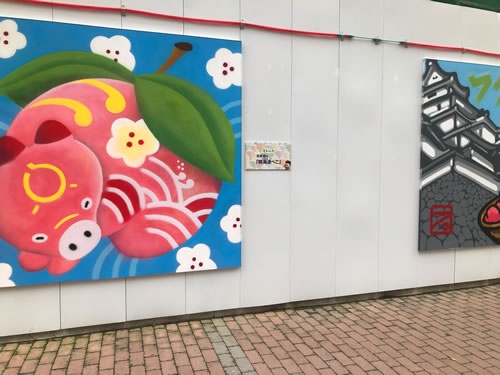 を! コレはあれですね。TVの「プレバト!!」でやってた福島駅前のスプレーアート・コンクールの作品展示。