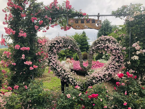 まず出迎えてくれたのが、入口付近にある巨大なハートの薔薇・・